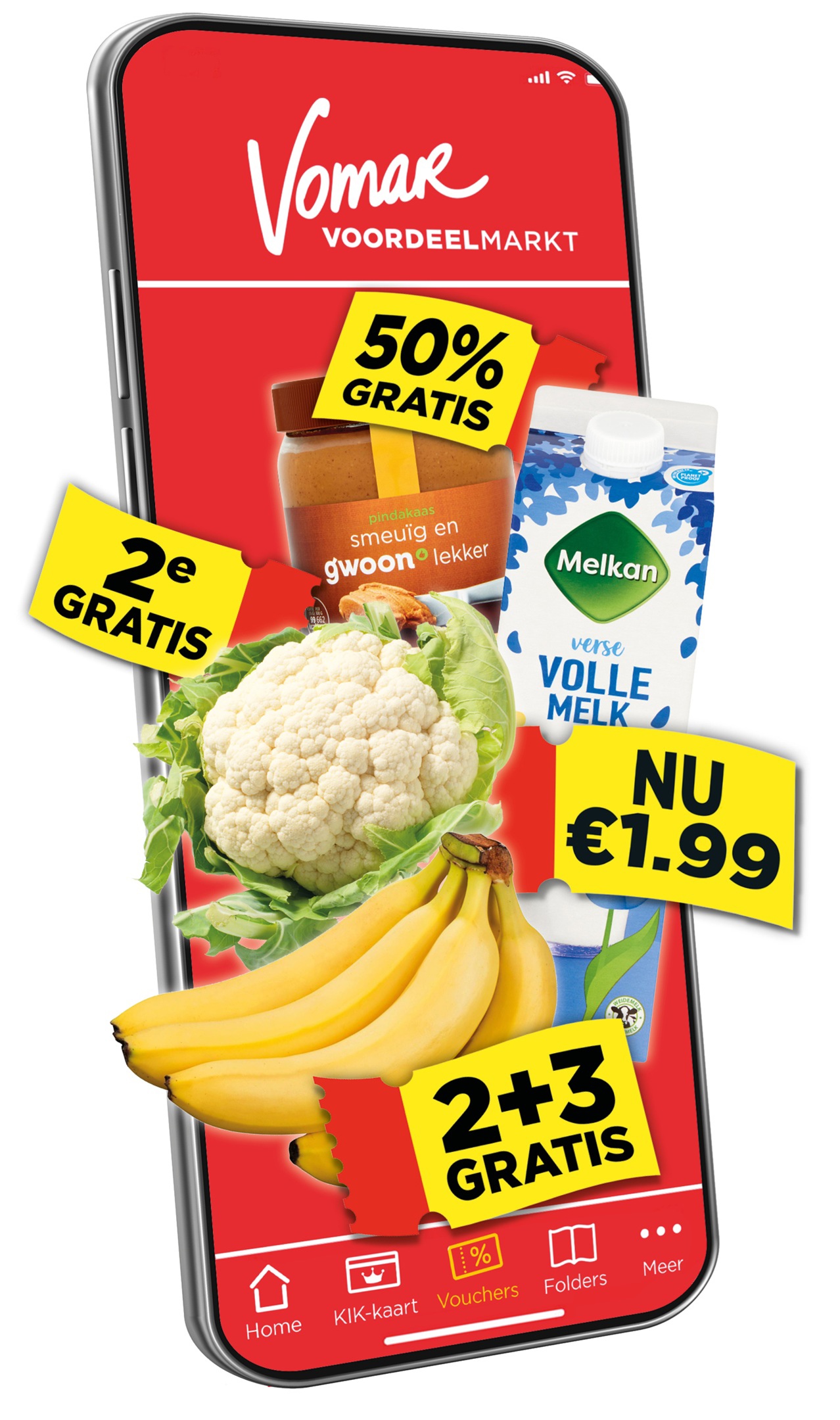 Naast onze wekelijkse topaanbiedingen, profiteer je nu van nóg meer korting. Als Koning(in) vind je elke week 10 Voordeel Vouchers in de Vomar-app. Activeer deze vouchers met één druk op de knop, scan je Klant-is-Koning kaart en bespaar jaarlijks tot wel € 600,- éxtra!