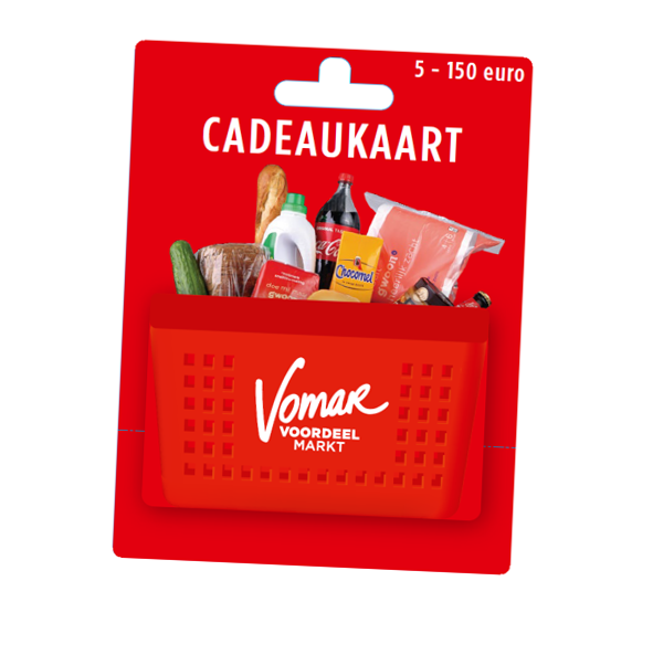Nieuw: de Vomar cadeaukaart, de leukste boodschap om te geven! In al onze winkels zijn Vomar cadeaukaarten nu verkrijgbaar. Je kunt de waarde zelf bepalen, vanaf een bedrag van 5 euro tot een maximum van 150 euro.